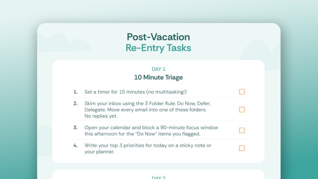 • ✅ Conquer your email inbox to prevent post-vacation overwhelm.
